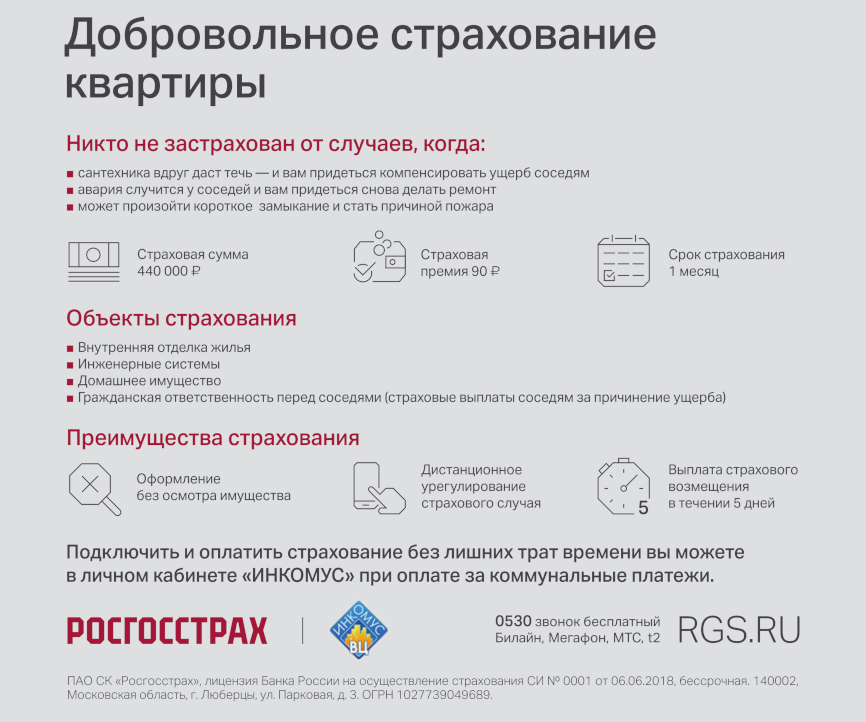 ПАО СК "Росгосстрах" совместно с АО ВЦ "Инкомус" реализовали новую услугу - добровольное страхование квартиры онлайн.